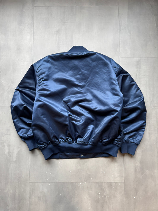 VINTAGE TROJANS BASEBALL NAVY SATIN BOMBER JACKET - XL
