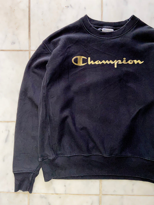 CHAMPION GOLD LOGO BLACK REVERSE WEAVE SWEATER - LARGE