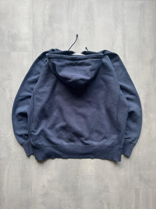 VINTAGE NIKE SWOOSH NAVY ZIP UP HOODIE - XXL