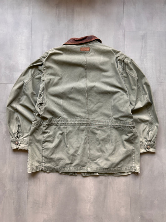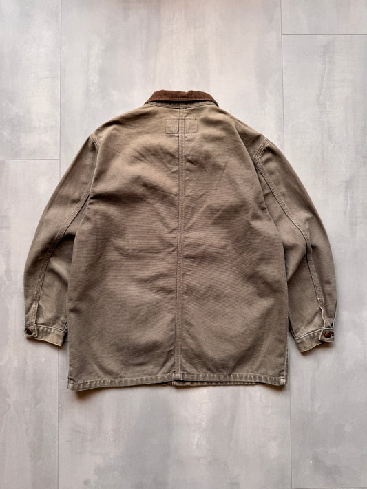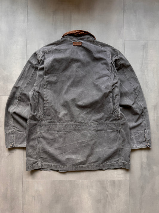 VINTAGE FADED GREY/GREEN CANVAS CHORE JACKET - M