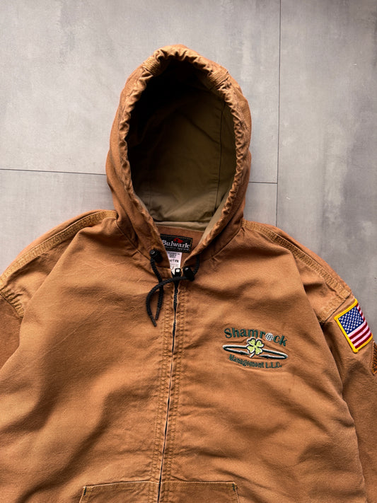VINTAGE BULWARK 'SHAMROCK MANAGEMENTS LLC' TAN ACTIVE JACKET - LARGE