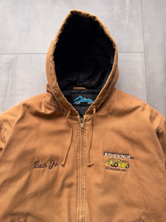 VINTAGE TRI-MOUNTAIN BRUBACHER EXCAVATING TAN ACTIVE JACKET - LARGE
