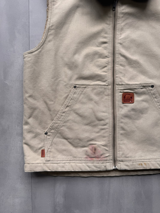 VINTAGE SOREL SHERPA LINED BEIGE WORK GILET - LARGE