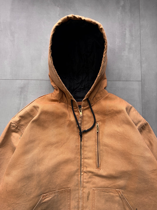 VINTAGE DRI DUCK GOLD SAFETY BROWN BLANKET LINED WORK JACKET - LARGE