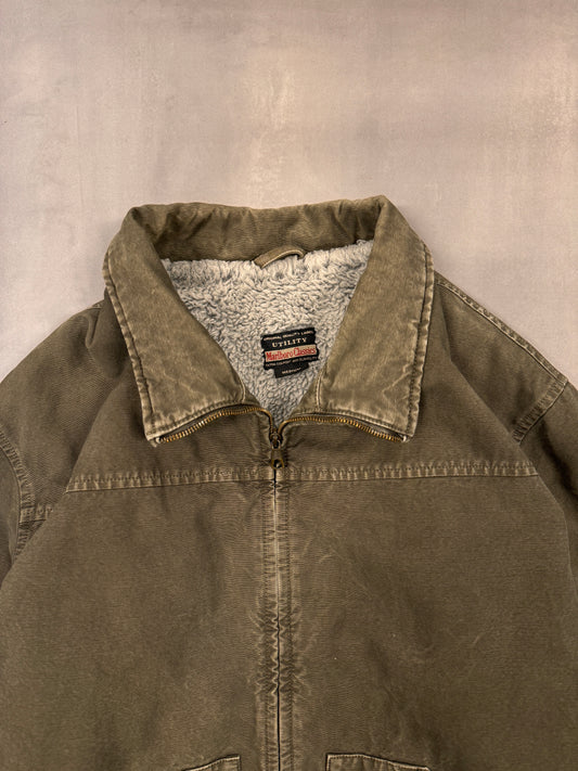 MARLBORO CLASSICS UTILITY GREEN SHERPA LINED TRUCKER JACKET - LARGE