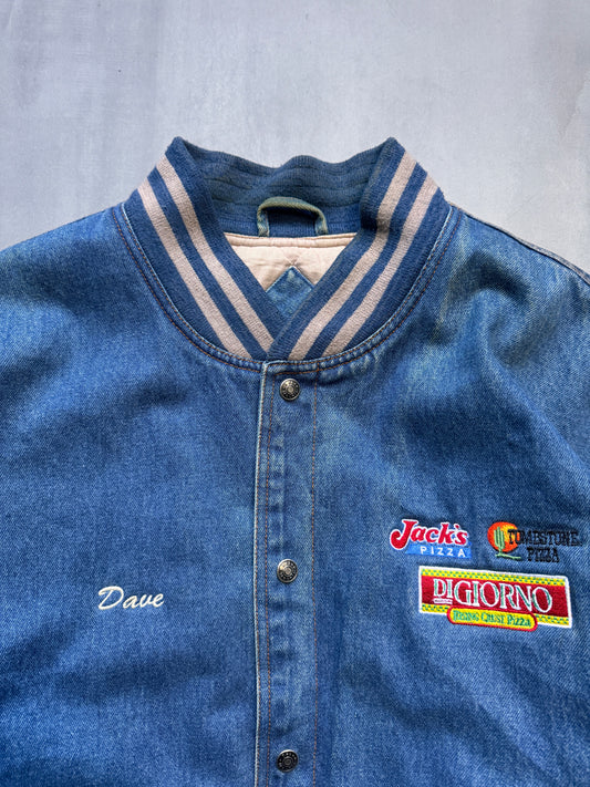 'PIZZA DI GIORNO' PADDED DENIM BASEBALL JACKET - XLARGE