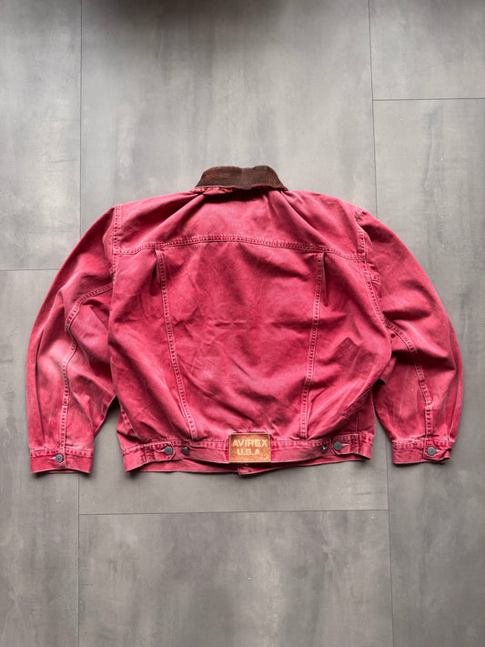 VINTAGE AVIREX FADED RED TRUCKER JACKET - M