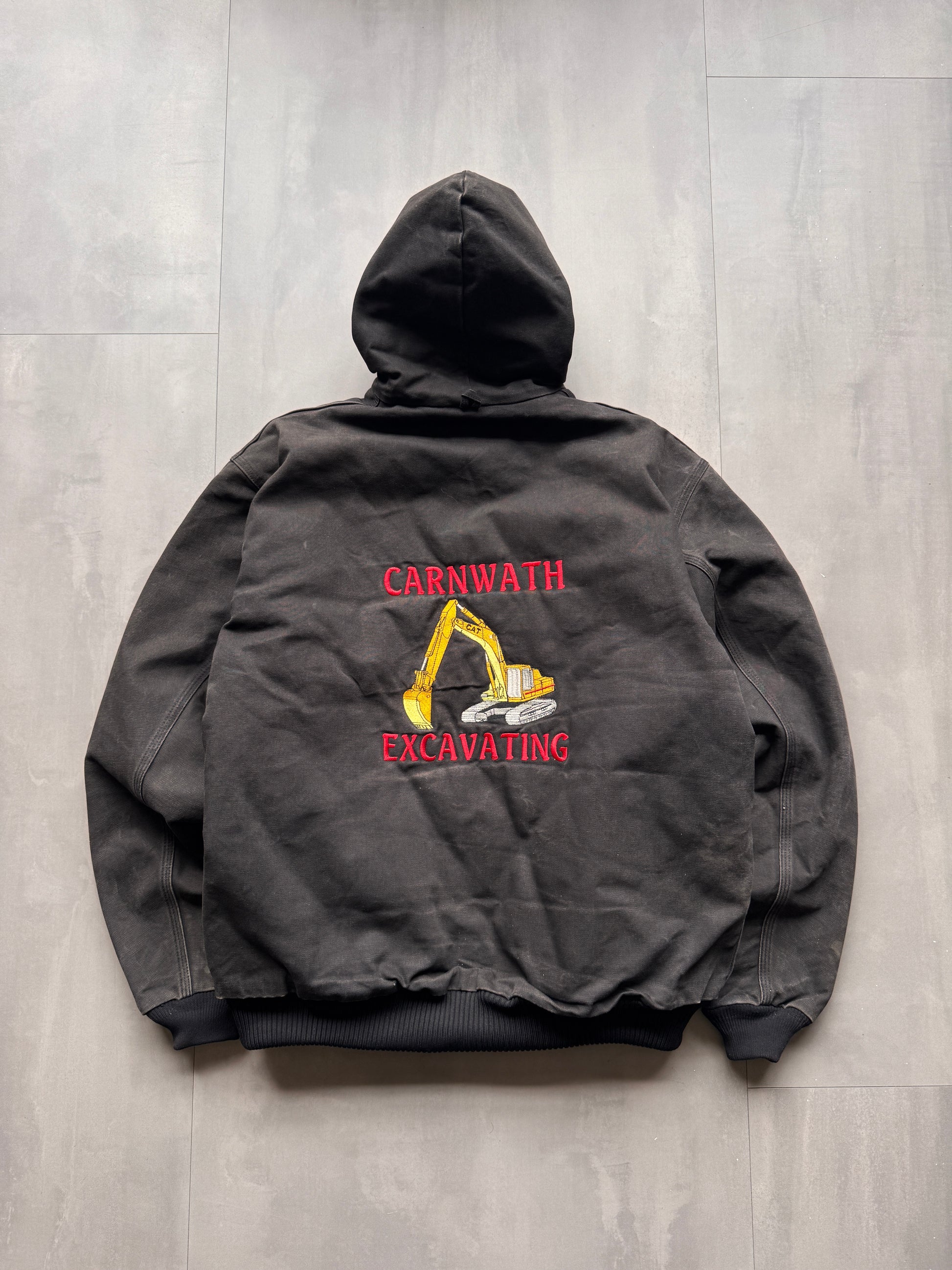 VINTAGE CARHARTT CARNWATH EXCAVATING FADED GREY ACTIVE JACKET - XL