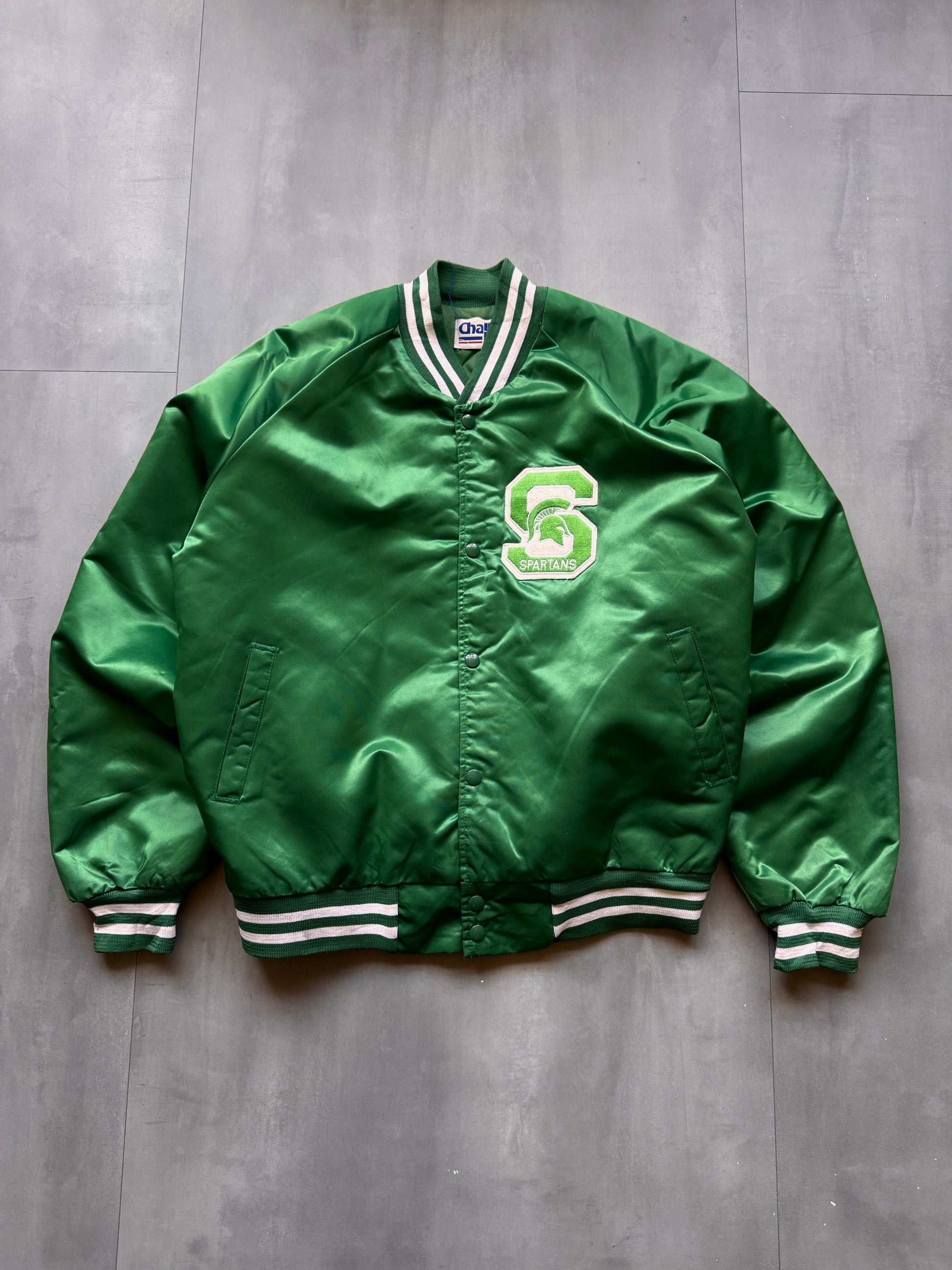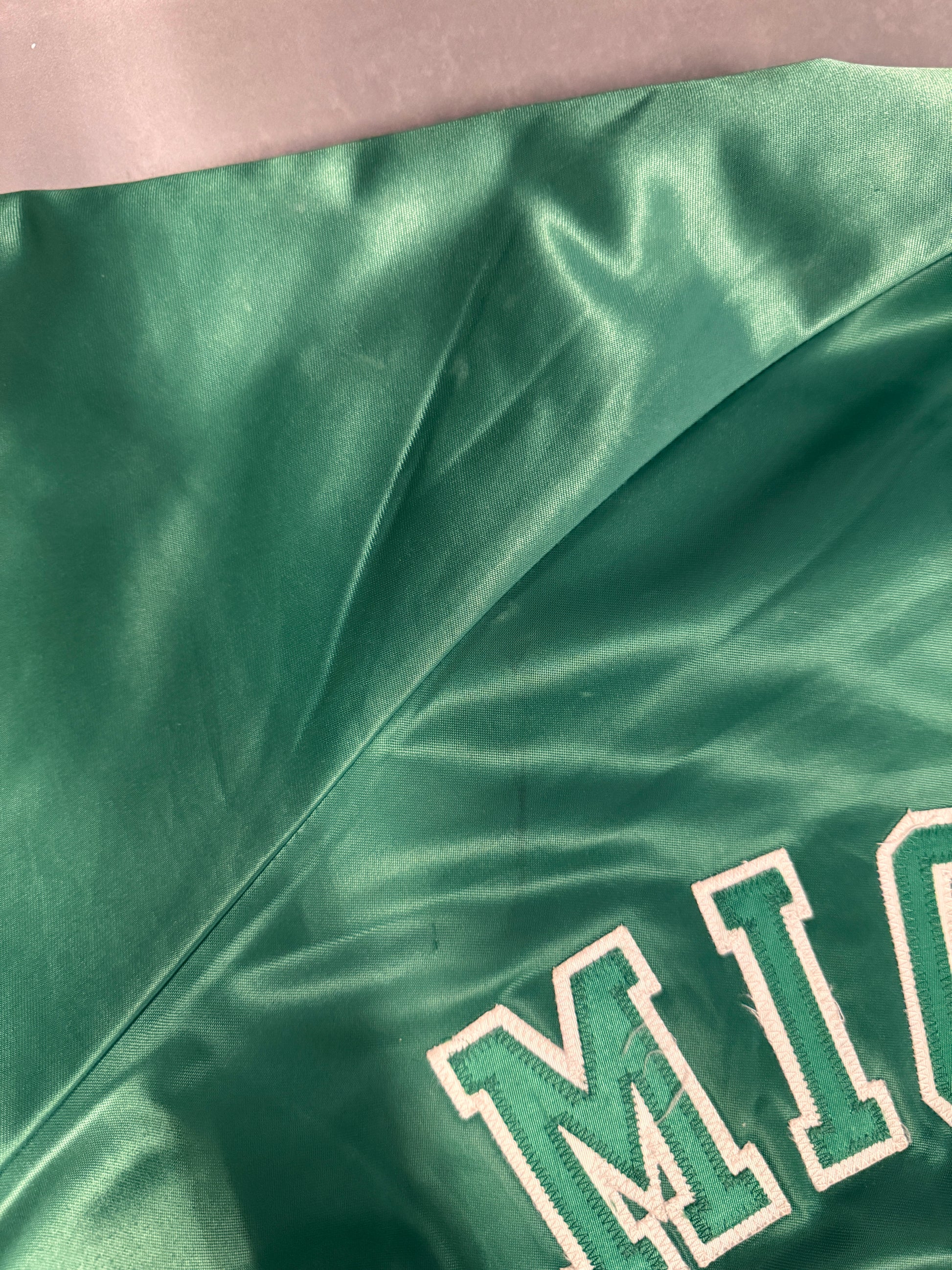 VINTAGE CHALKLINE MICHIGAN STATE SPARTANS GREEN SATIN BOMBER JACKET - XL