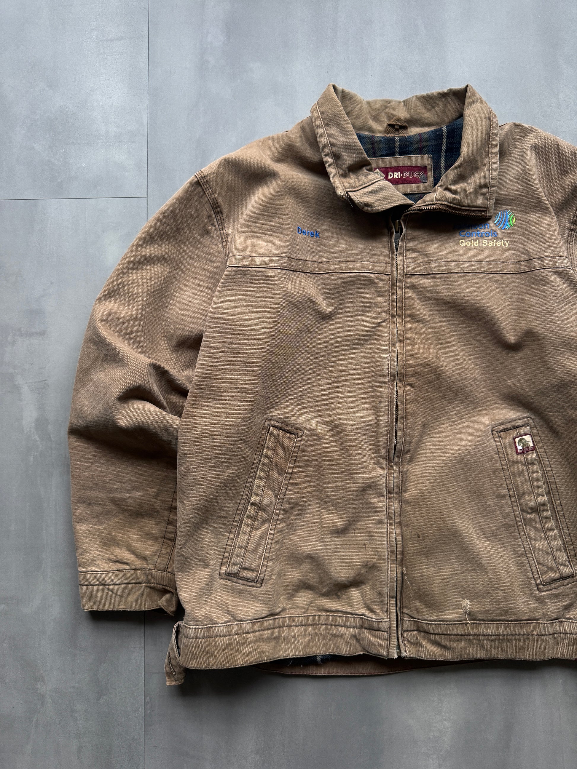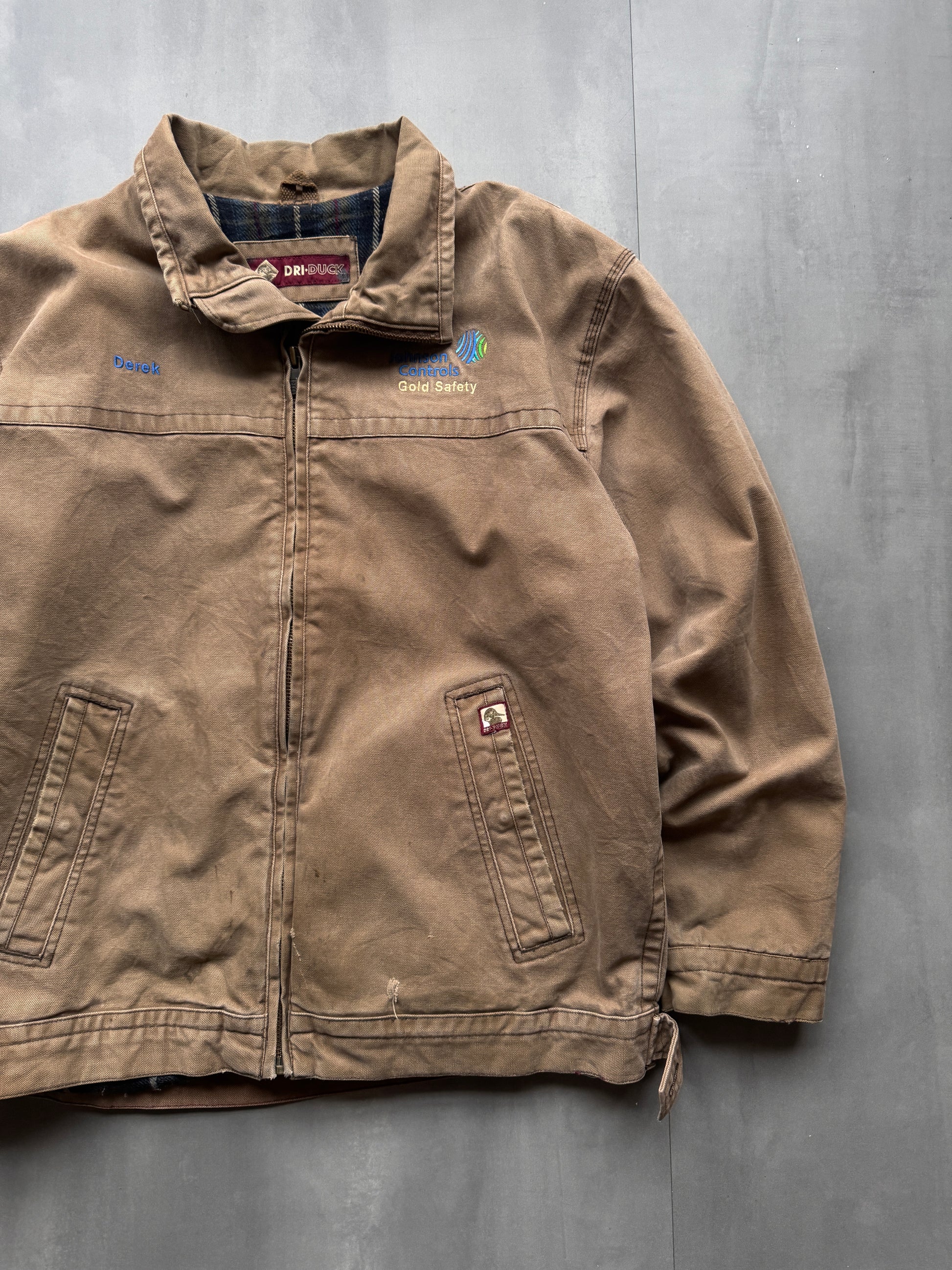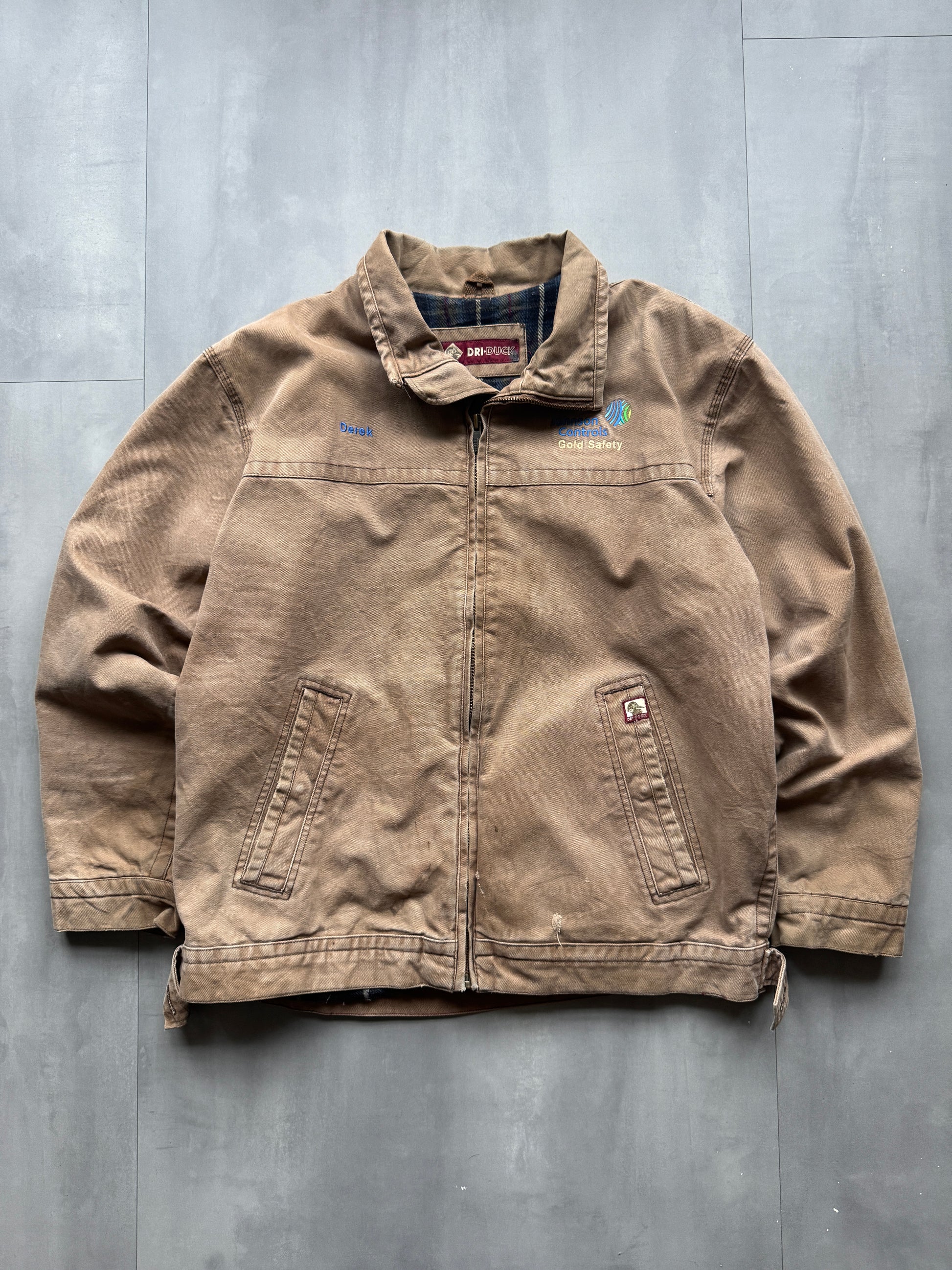 VINTAGE DRI DUCK GOLD SAFETY BROWN BLANKET LINED WORK JACKET - L