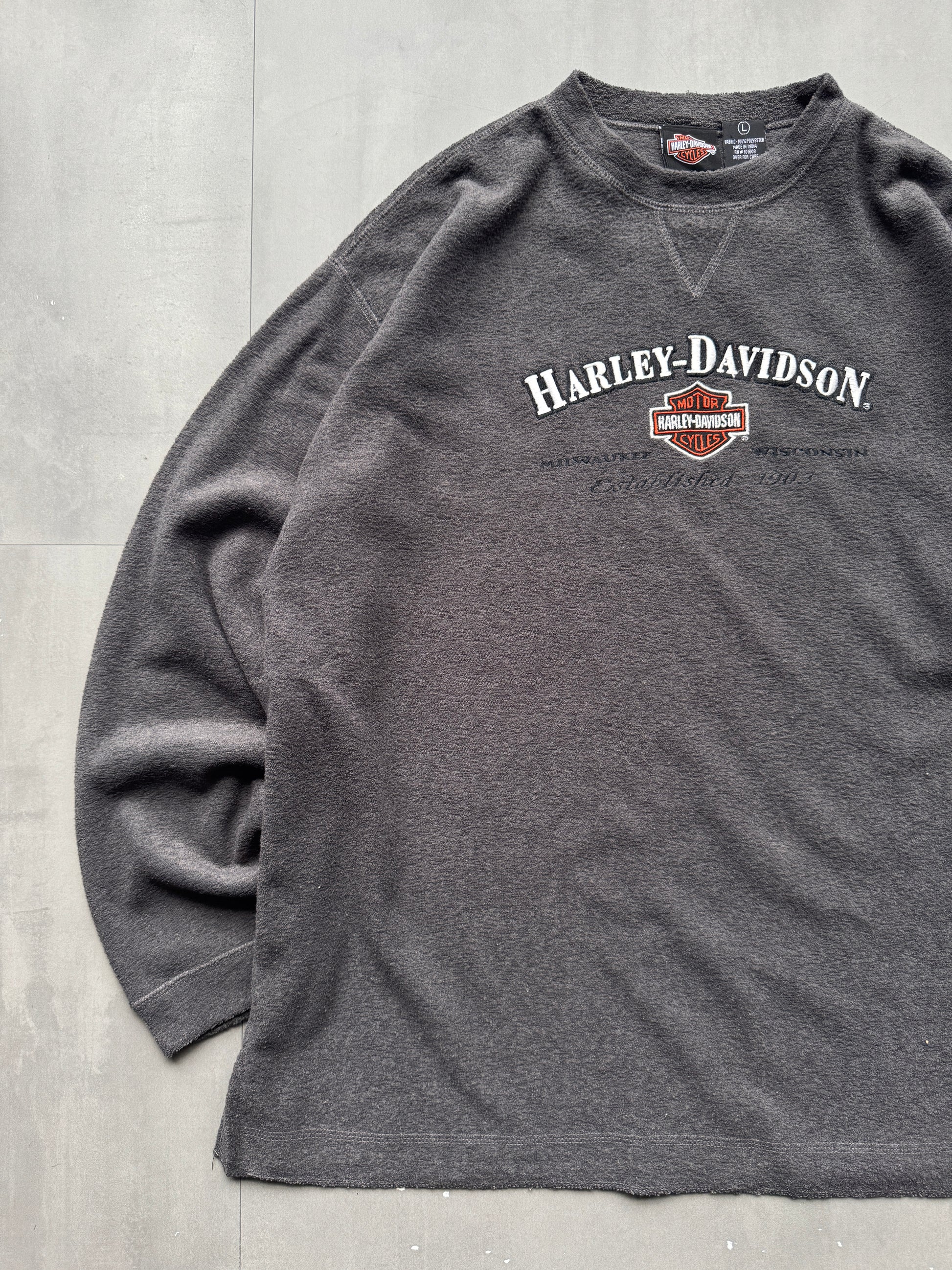 VINTAGE HARLEY DAVIDSON GREY FLEECE SWEATER - L