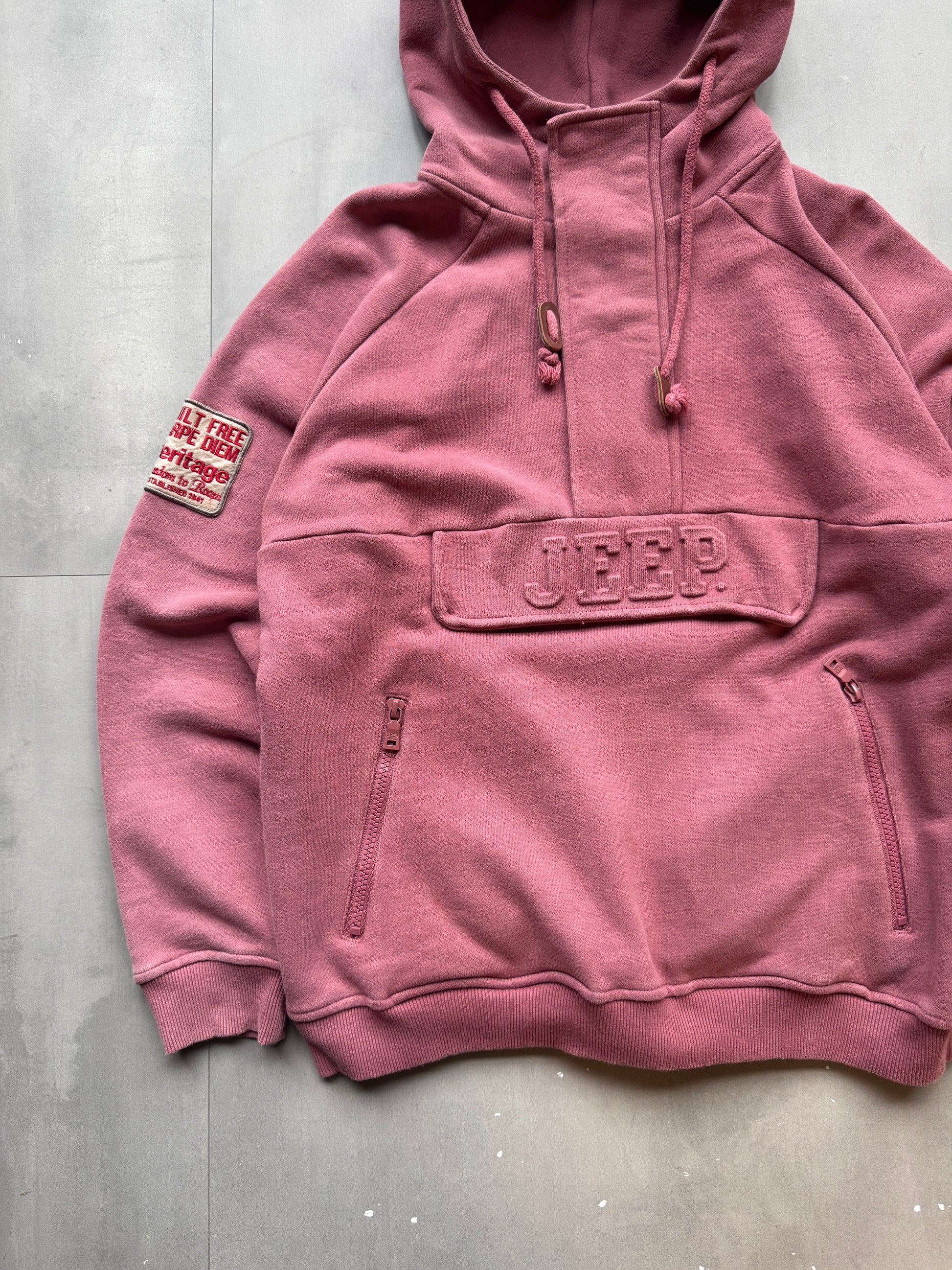 VINTAGE JEEP FADED RED 1/4 ZIP HOODIE - S