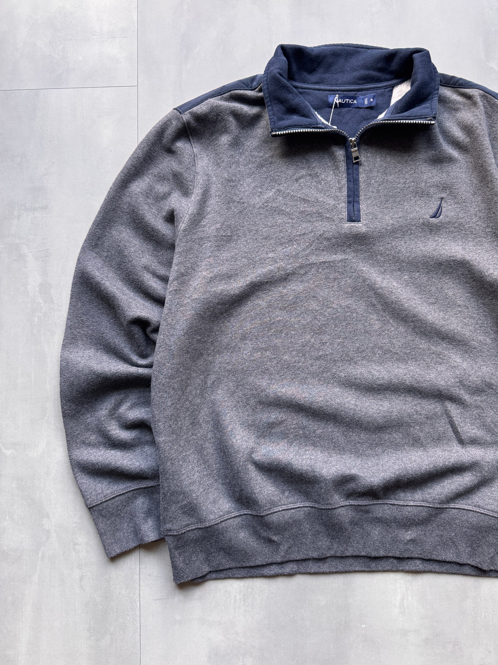 VINTAGE NAUTICA GREY 1/4 ZIP SWEATER - XL
