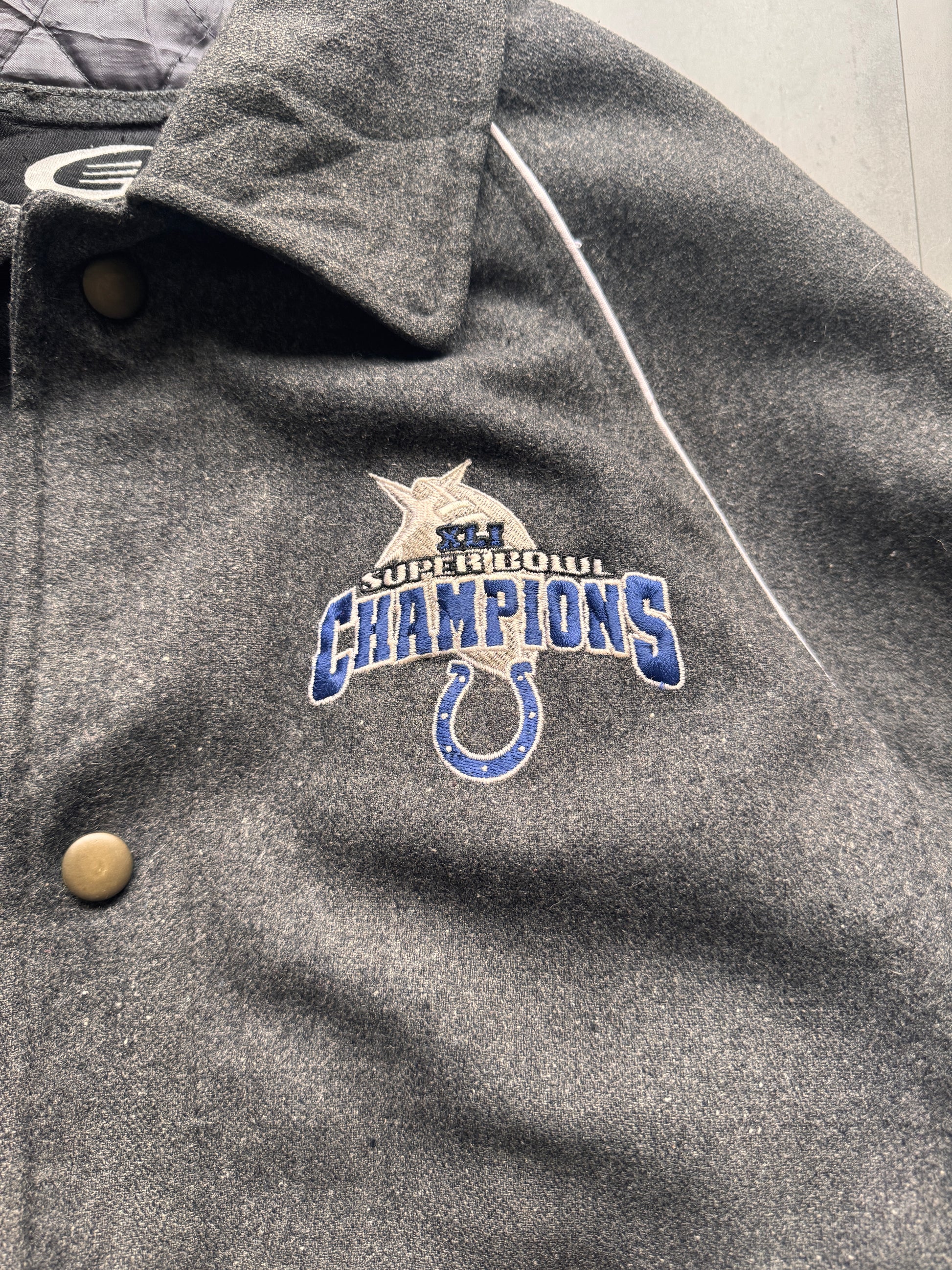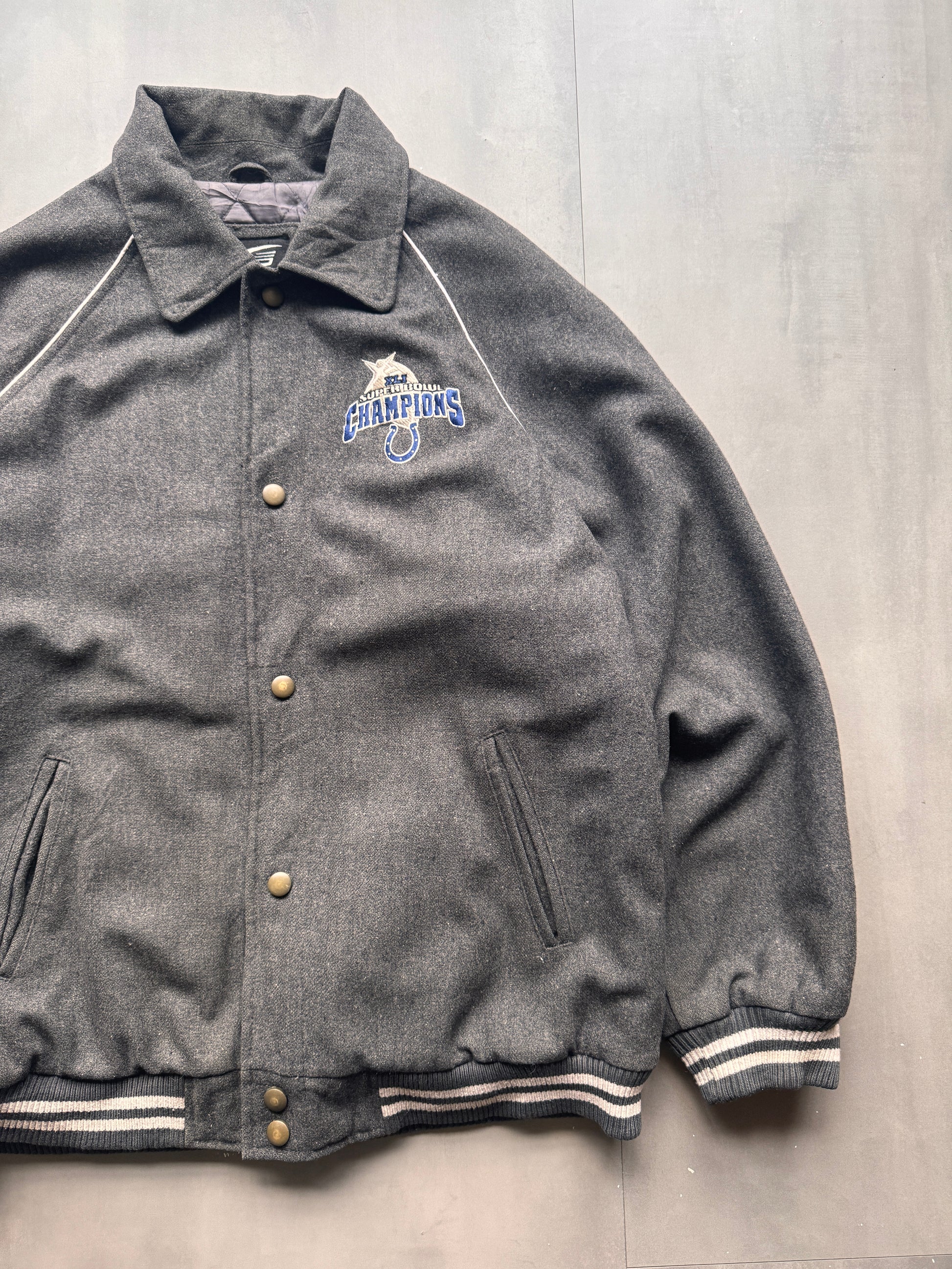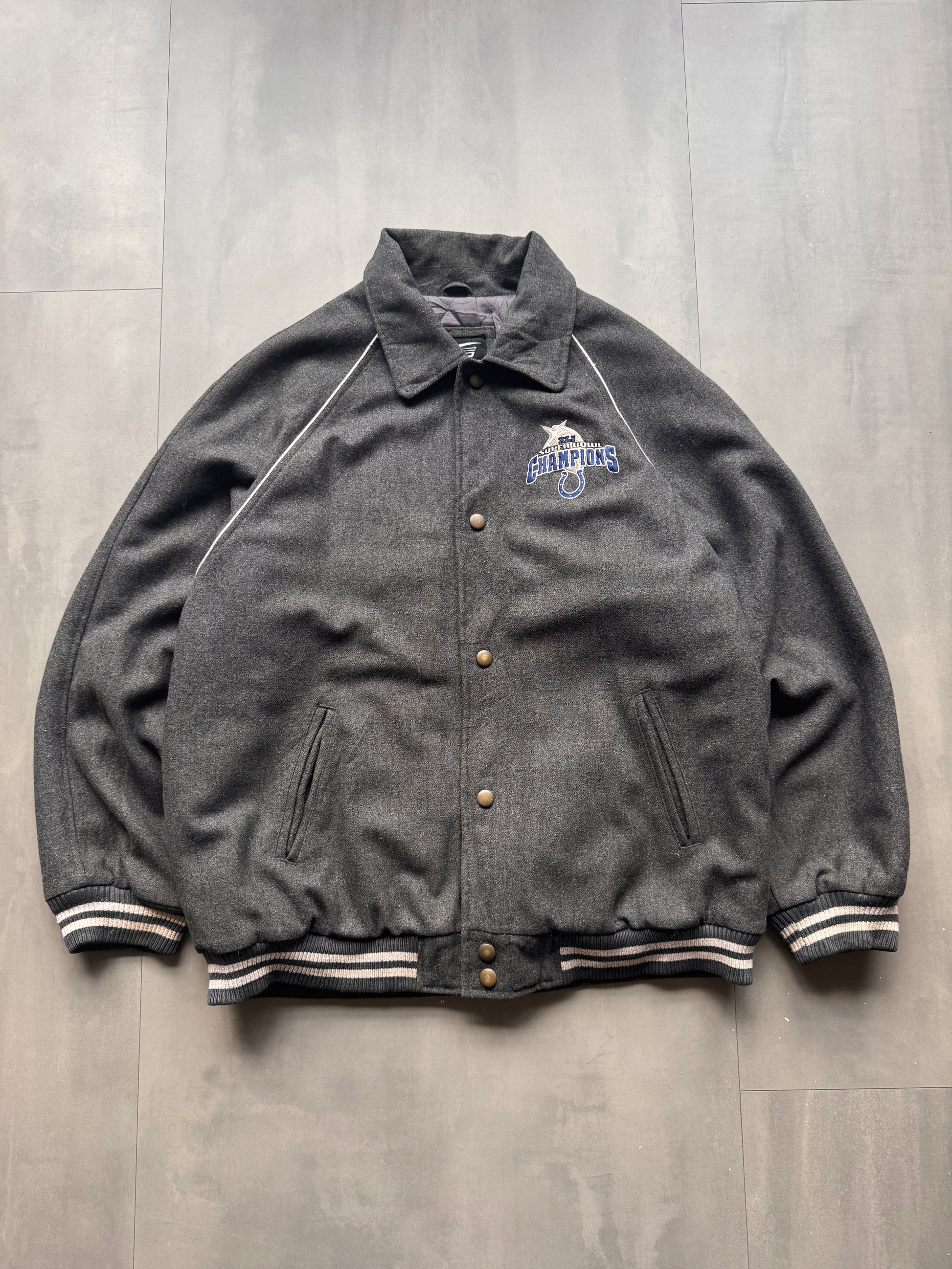 VINTAGE NFL INDIANAPOLIS COLTS GREY WOOL VARSITY JACKET - XXL