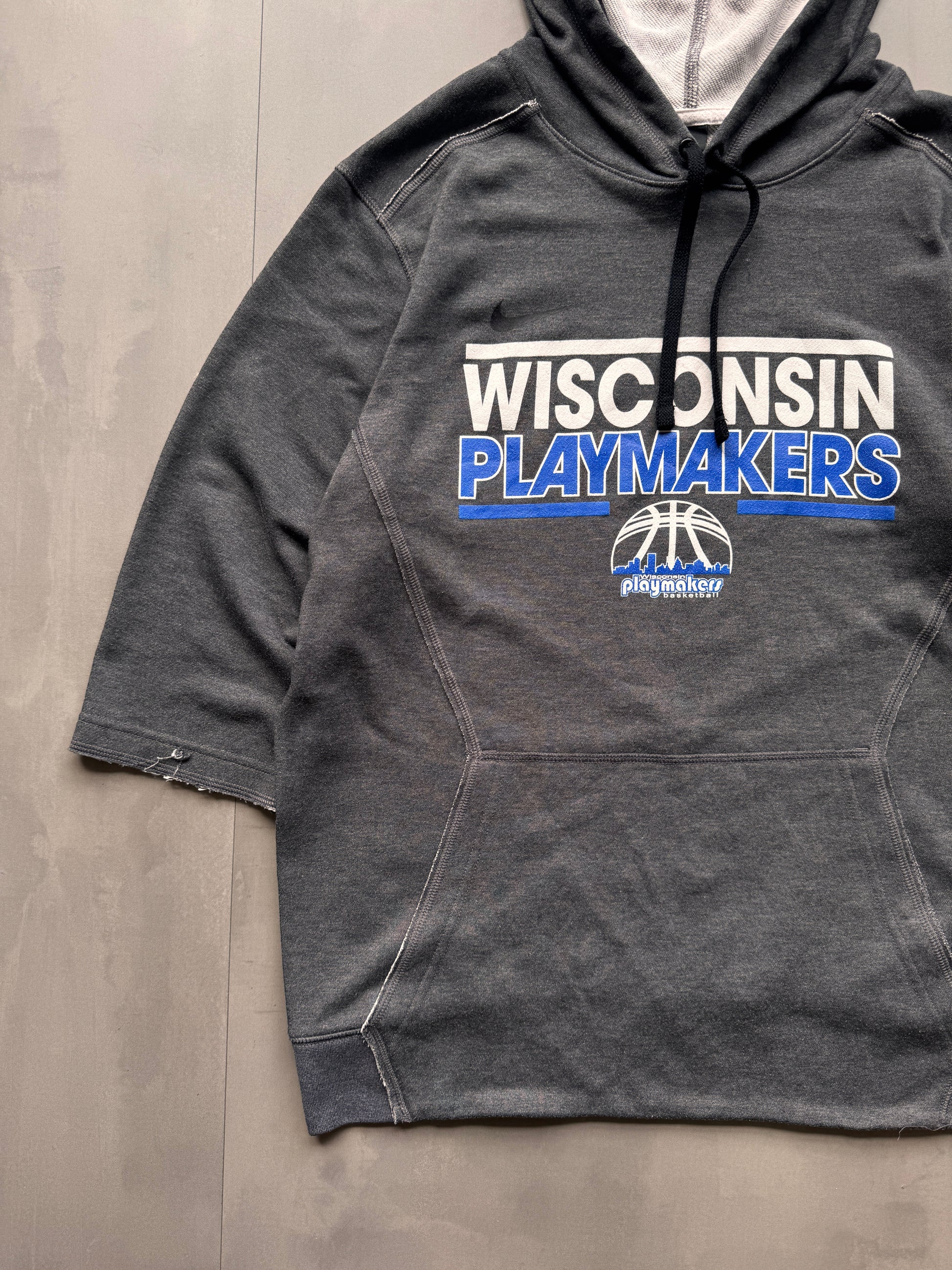 VINTAGE NIKE WISCONSIN GREY SHORT SLEEVE HOODIE - M