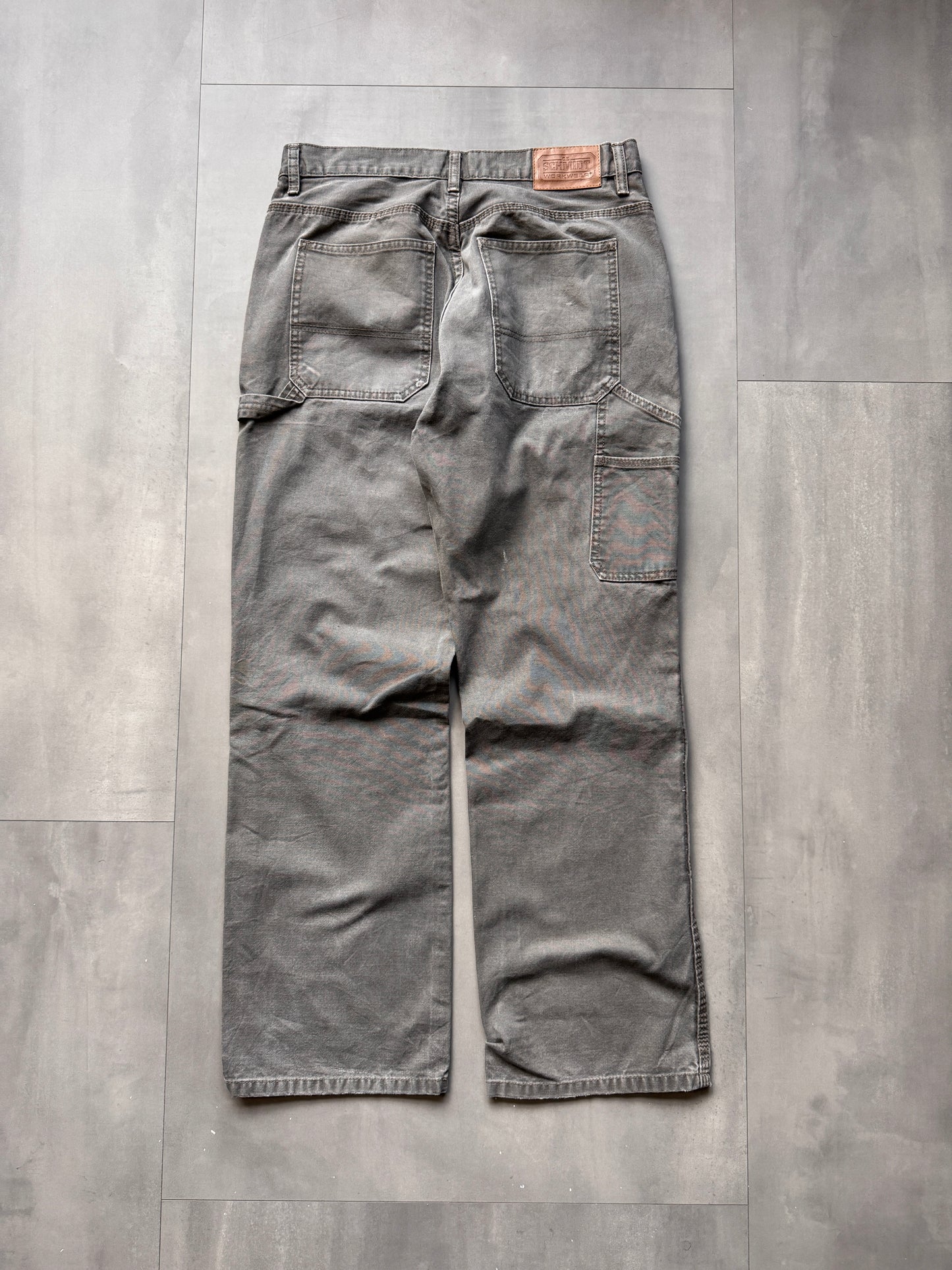 VINTAGE SCHMIDT DISTRESSED FADED GREY CARPENTER PANTS - 32