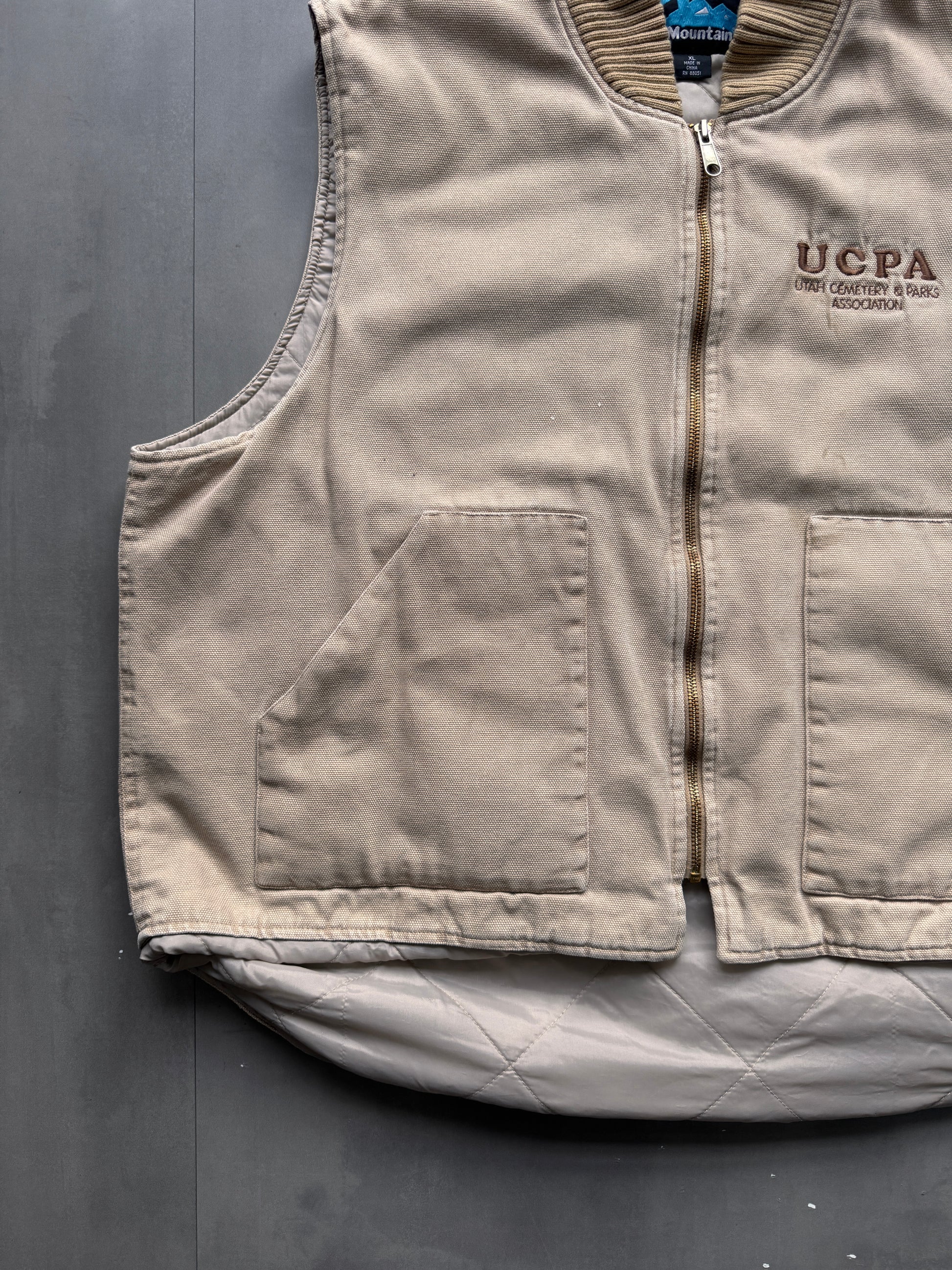 VINTAGE TRI-MOUNTAIN BEIGE WORK GILET - XL